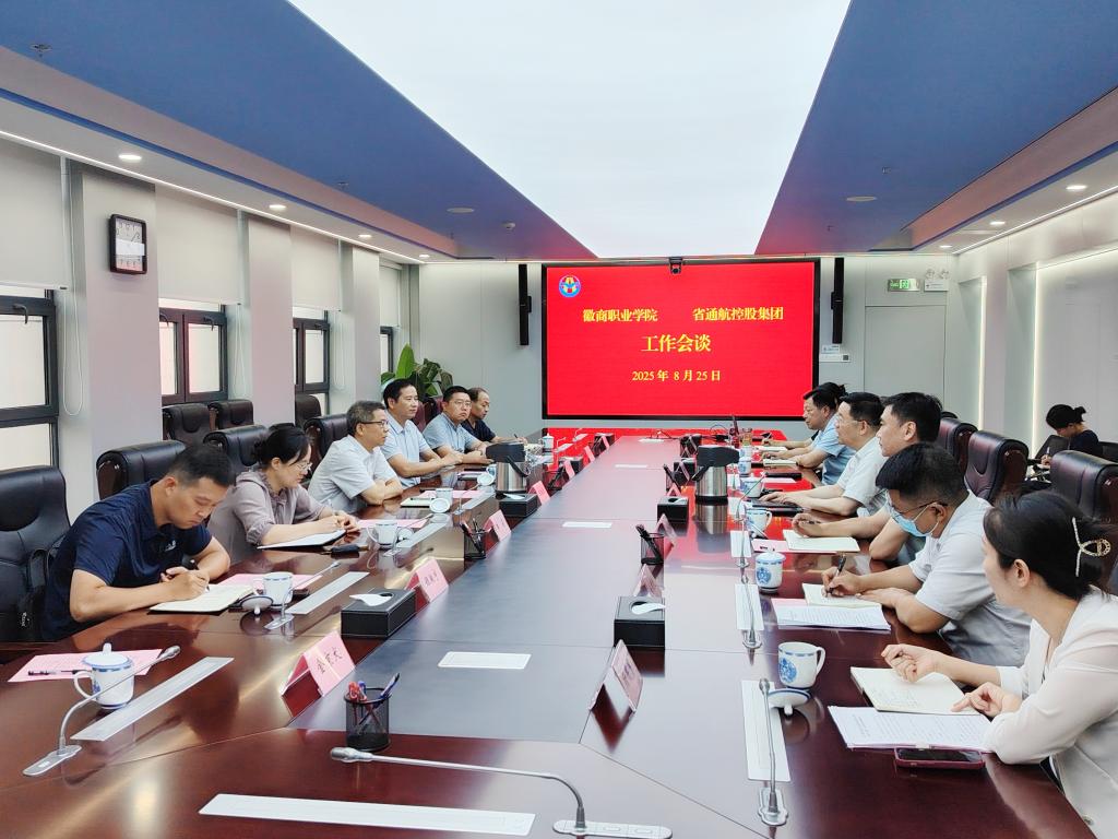 8月25日下午,校党委书记陈春来,党委副书记、校长丁仁船带队赴安徽省通航控股集团考察调研,与通航集团党委书记、董事长汤斌举行工作会谈。校党委委员、纪委书记李莉,通航集团党委副书记、总经理王兴兵,党委副书记武文斌参加调研和会谈。