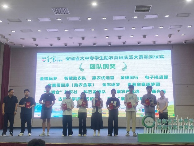 8月26日,首届“我把金寨带回家”安徽省大中专学生助农营销实践大赛(全程赛)在六安金寨落幕。我校物流与供应链学院“金徽耘梦”队以总销售额第11名的成绩成功晋级决赛并摘得铜奖。