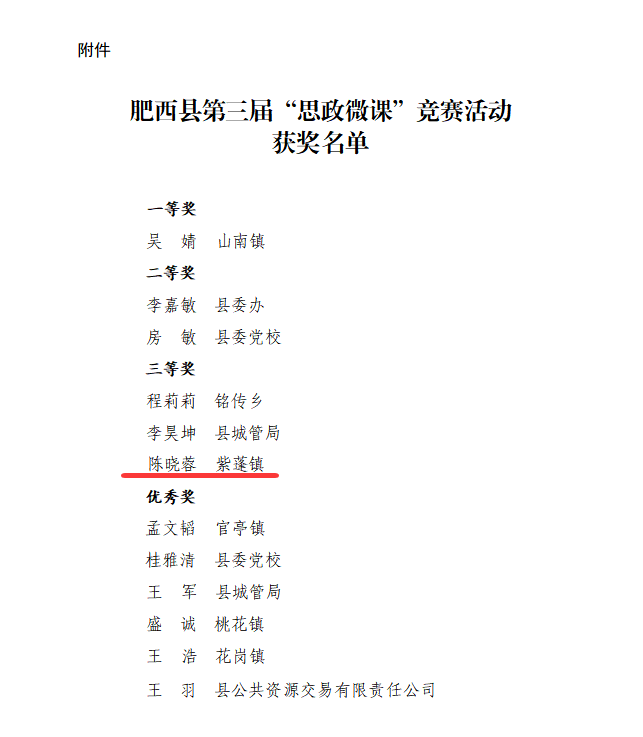 9月23日,肥西县第三届“思政微课”竞赛结果正式公布,我校陈晓蓉老师凭借扎实的理论功底与出色的授课表现,荣获竞赛三等奖。