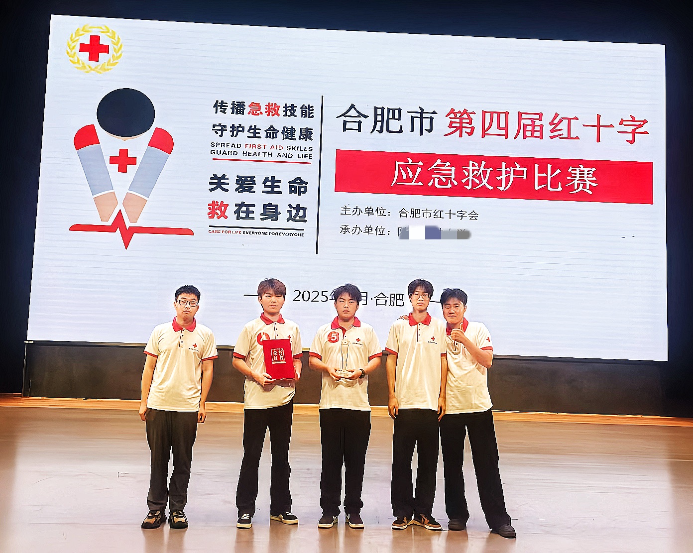 近日,“合肥市第四届红十字应急救护比赛”圆满落幕。此次比赛,由学校总务处对接,汽车与智能制造学院学子(刘桂杰、方宗顺、张茂森、段程磊、王敬强)代表肥西县红十字会代表队参赛,凭借扎实的专业技能、默契的团队协作,从多支参赛队伍中脱颖而出,荣获团体三等奖,在个人竞技环节中分别斩获:创伤包扎、肠管溢出、骨折固定三个单项第三名,用实力彰显了县红十字会组织的应急救护水平。