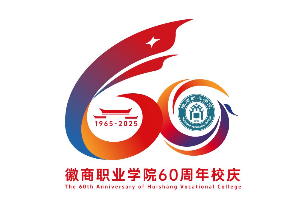 徽商职业学院60周年校庆标识图案以“六十载徽商育英才,薪火相传向未来”为核心,通过数字“60”创意变形、徽派元素与校徽符号的结合,诠释学校“栉风沐雨一甲子,砥砺奋进新征程”60周年校庆主题。“6”的造型似飘扬旗帜与灵动飘带,寓意精神引领与发展传承;“0”结合多彩螺旋与校徽,象征多元开拓与生生不息;“6”上方的星星元素喻示莘莘学子如繁星闪耀与学校的光明未来。