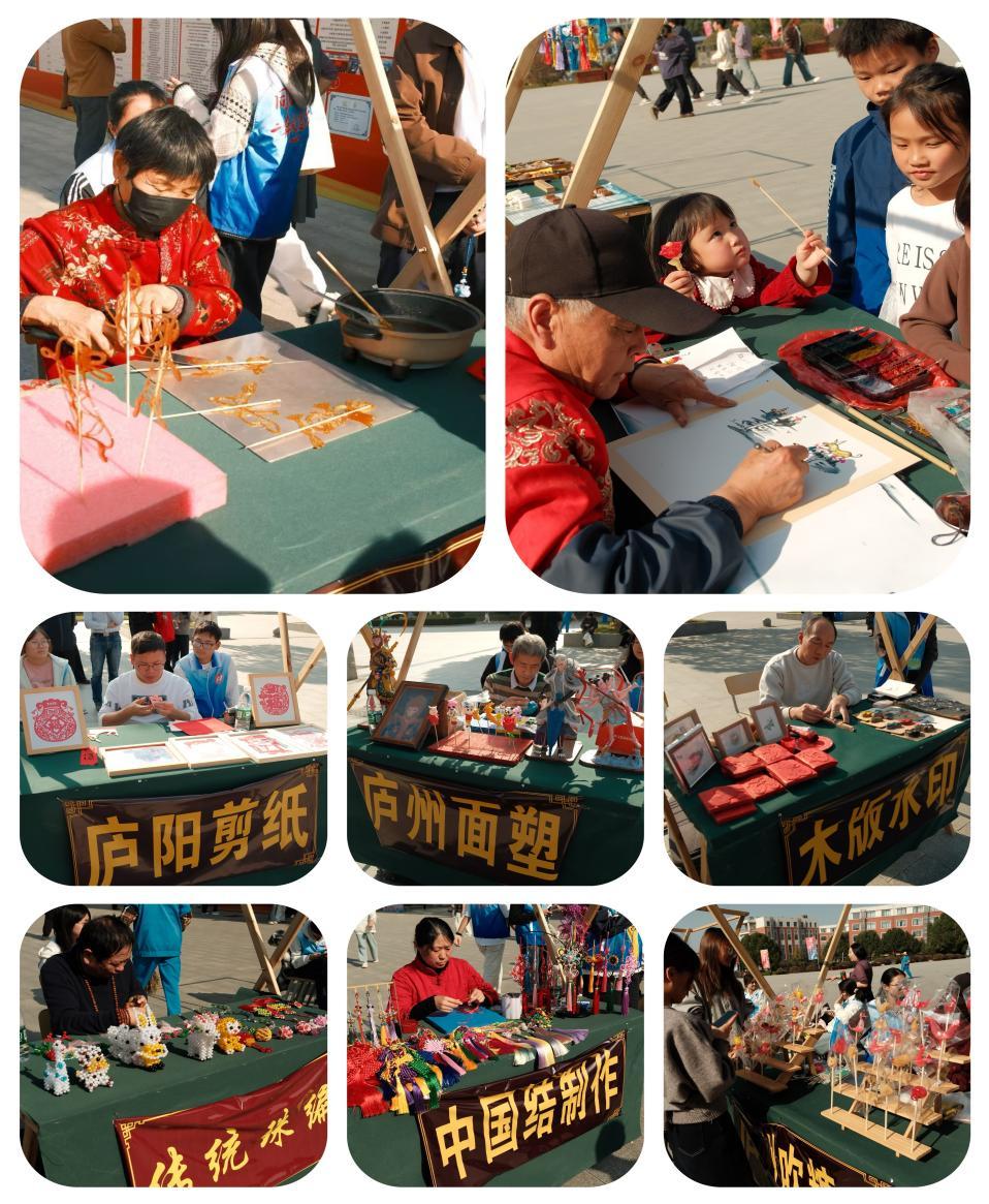 游园会现场,庐阳糖画、醒狮文创、木版水印等十项省级及地方特色非遗项目传承人齐聚校园,以“技艺展示+文化叙事”的形式,为师生呈现了一场中华优秀传统文化的视觉与精神盛宴。传承人指尖流转间,滚烫糖浆凝结成灵动纹样;刻刀起落之际,木版晕染出清雅水墨;针线穿梭之中,狮头绽放出威武神采,在一捏一塑、一印一画的匠心演绎中,将千年文化记忆具象化、生活化。师生们零距离观摩非遗技艺的精湛魅力,聆听传承人坚守初心、创新发展的动人故事,在沉浸式体验中触摸中华优秀传统文化的血脉基因,深刻感悟非遗技艺所承载的民族记忆、工匠精神与生活智慧,让非遗课堂成为“行走的思政课”,实现了文化传承与价值引领的同频共振。