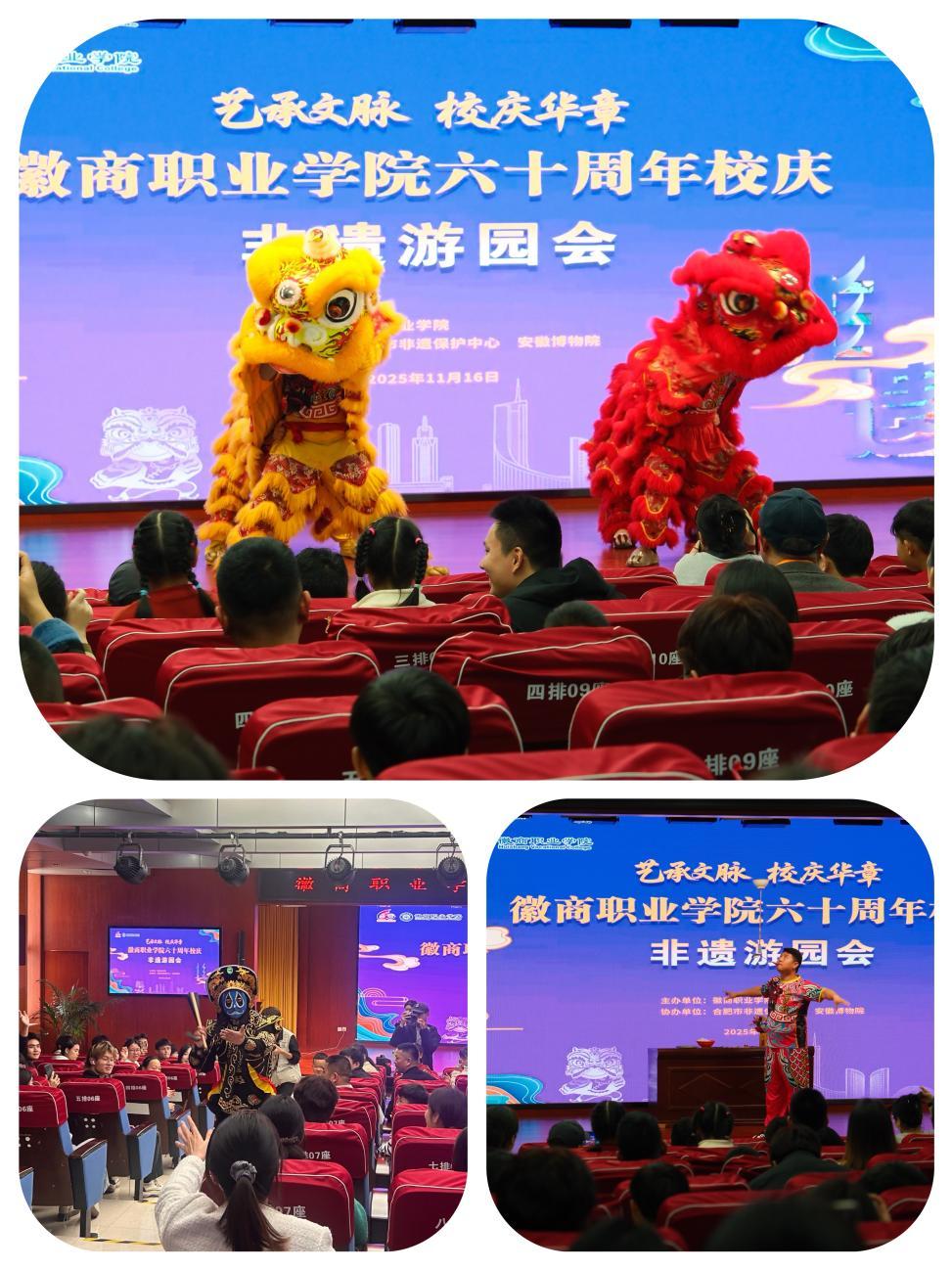 六十载弦歌不辍,一甲子薪火相传。适逢建校60周年之际,学校联合合肥市非物质文化遗产保护中心、安徽博物院精心策划并成功举办“艺承文脉 校庆华章”主题非遗游园会。这场集非遗技艺展示、特色舞台展演于一体的文化盛宴,既是向建校60周年的深情献礼,更是学校深化思想政治理论课改革创新、构建“大思政”育人格局的生动实践,实现了非遗文化活态传承与思政教育价值引领的深度融合,让师生在沉浸式文化体验中厚植家国情怀、强化使命担当,彰显了学校以文化人、以文育人的鲜明育人导向。