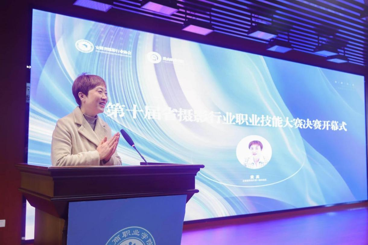 丁仁船代表学校向莅临大赛的各位领导、专家及参赛师生表示热烈欢迎。他在致辞中指出,摄影不仅是记录美好的艺术形式,更肩负着文化传承与产业升级的重要使命。本届大赛作为推动安徽省摄影行业高技能人才队伍建设的重要平台,对弘扬工匠精神、促进行业高质量发展具有重要助推作用。他希望全体选手全力以赴、沉着应战,充分展现新时代技能人才的精湛技艺与良好精神风貌。