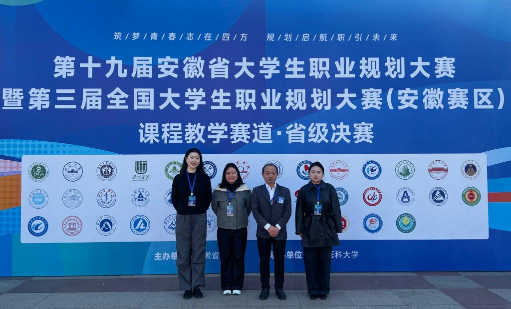 本次比赛由安徽省教育厅主办,于11月29日在蚌埠医科大学决赛。大赛聚焦大学生职业发展与就业能力培养,重点考察职业规划与就业课程的教学设计与实施情况。比赛分为课程建设汇报、教学展示(无生授课)、互动答辩三个环节,全面考察参赛团队的课程构建能力、教学实践情况与临场应变能力。