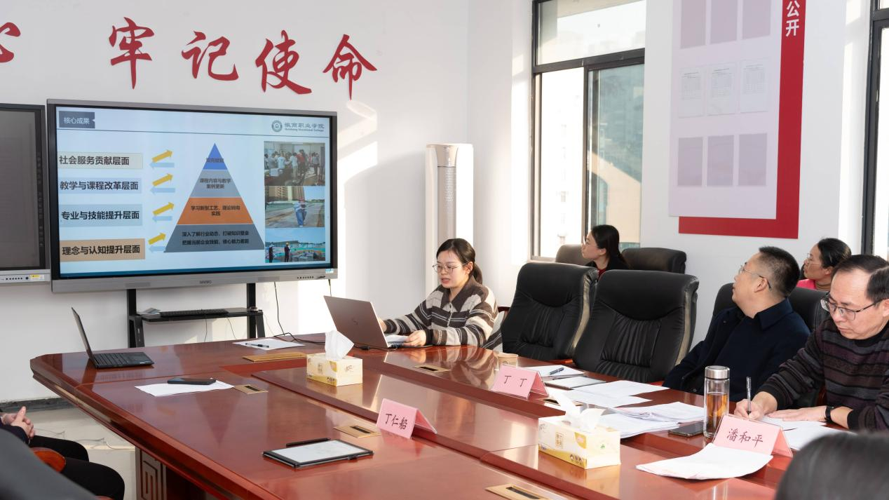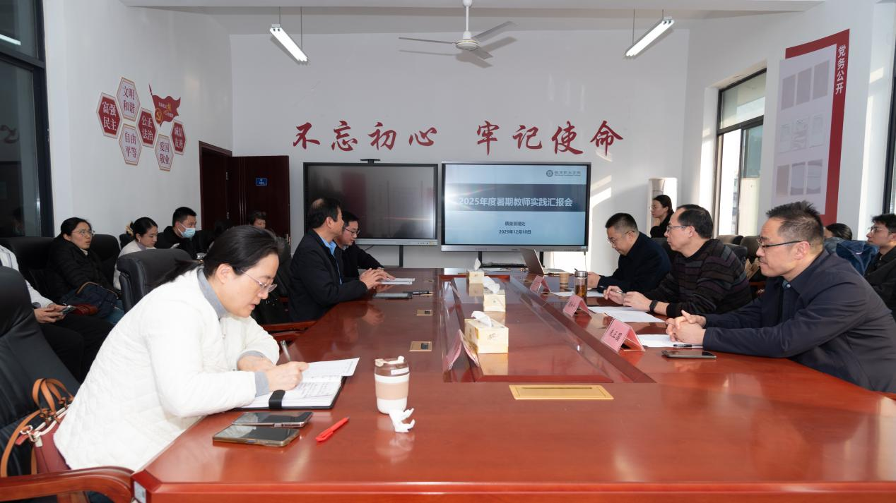 12月10日下午,学校教师企业实践汇报会在槽郢校区顺利召开。三位校外专家组成评议组,学校党委副书记、校长丁仁船,党委委员、纪委书记李莉出席会议,质量管理处、参与企业实践的教师参加会议。