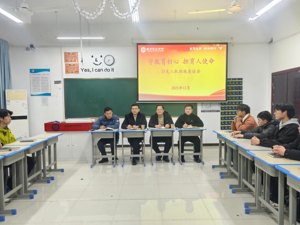 随后,吴红星与25级无人机应用技术班的学生召开了一场座谈会。座谈会上,学生们畅所欲言,围绕课程学习、实践教学、生活服务、未来的职业规划等方面,分享了各自的体会、困惑与建议。吴红星认真聆听每一位同学的发言,详细记录,并不时与同学们交流探讨。对于同学们提出的合理诉求和建设性意见,均现场予以回应,并表示将协调相关部门认真研究,推动解决。同时,也向同学们介绍了学校的发展规划与相关支持政策,鼓励大家要勇于提出问题、积极参与学校建设,共同成长进步。