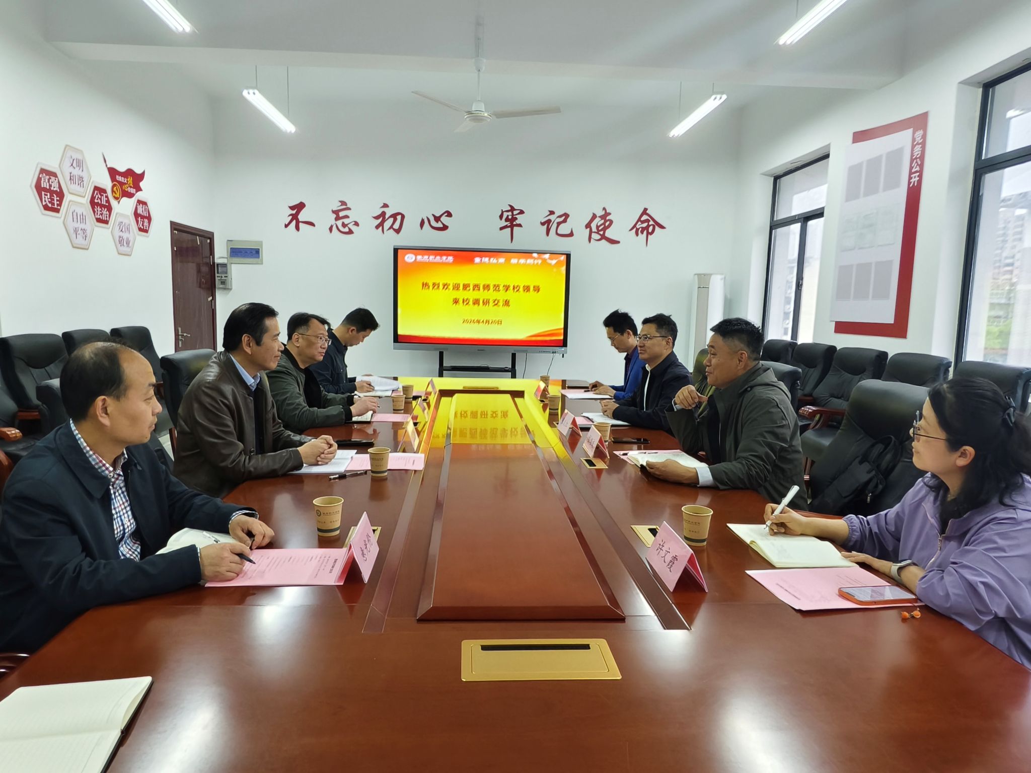 4月20日,安徽省肥西师范学校副书记、副校长程绍文一行莅临我校访问交流。学校党委副书记、校长丁仁船出席交流会。
