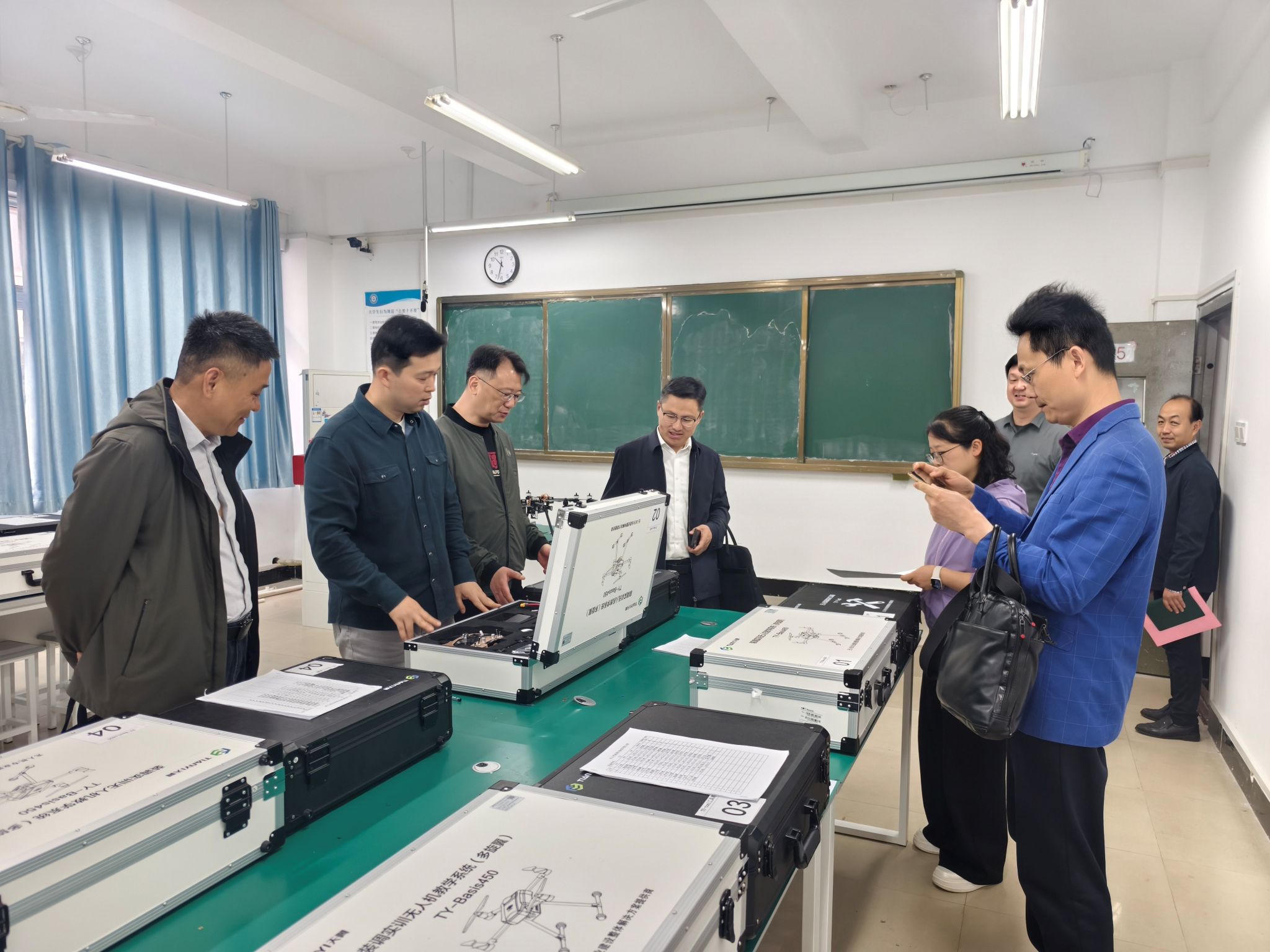 会后,程绍文一行实地参观了学校无人机装调及虚拟仿真实训室。