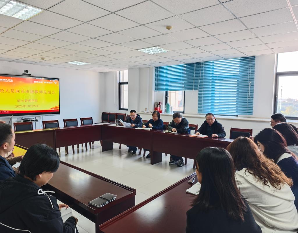 为进一步落实行政人员联系班级工作,10月22日下午,商务管理学院在图文信息中心406会议室召开行政人员与联系班级对接见面会。学校副校长王方出席会议,商务管理学院党政负责同志和全体专兼职辅导员、各班级联系人参加见面会,会议由鲍骏主持。