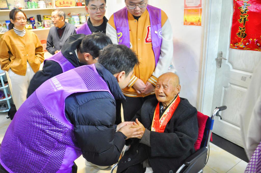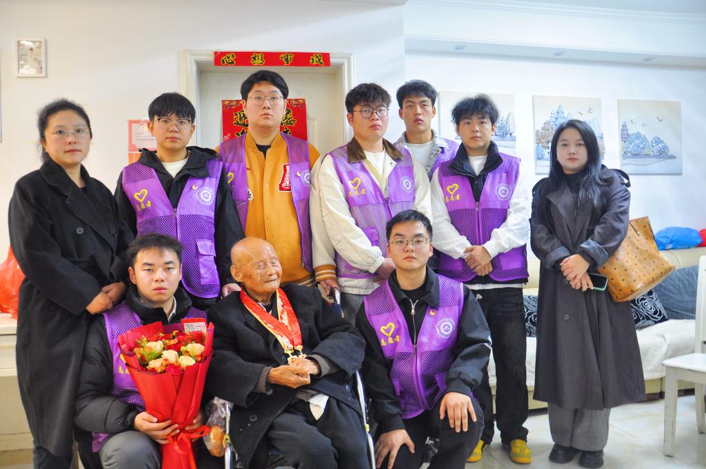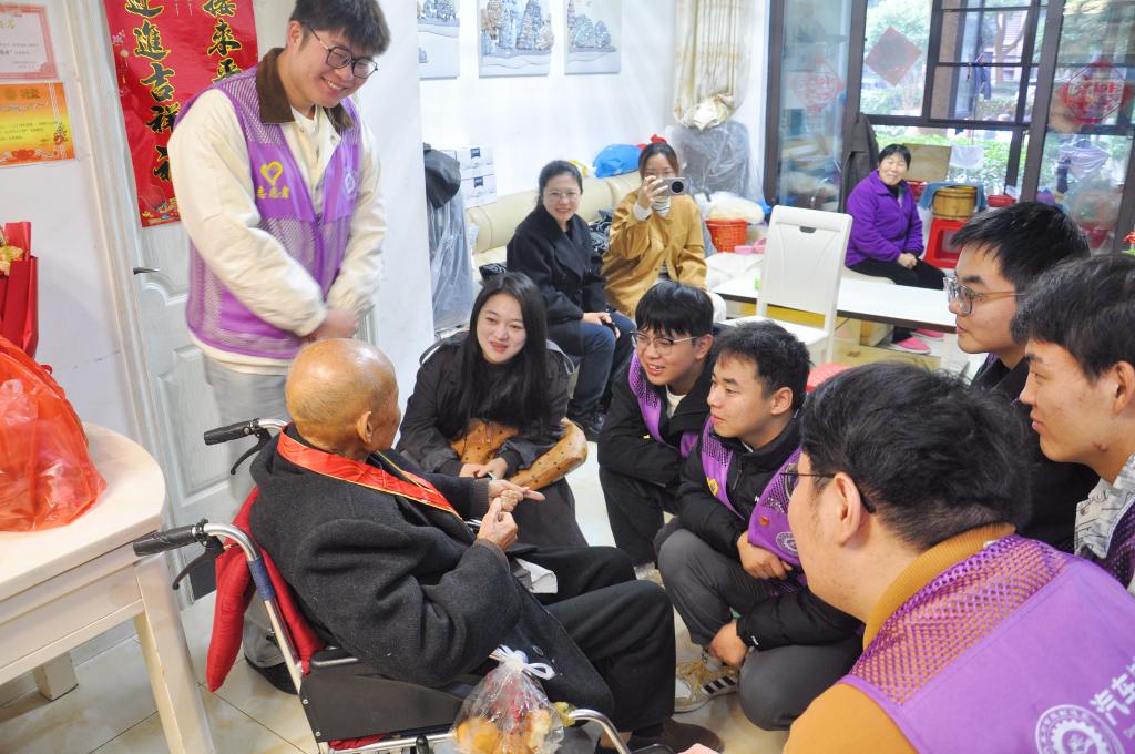 岁岁重阳,情系老兵。重阳节当日,汽车与智能制造学院“智造匠星”志愿服务队10余名志愿者,在肥西县退役军人事务局工作人员与学生党支部教师的带领下,带着“致敬英雄”纪念徽章与生活慰问品,专程走访抗美援朝老兵汪宏昌家中,用青春行动传递敬老敬意。