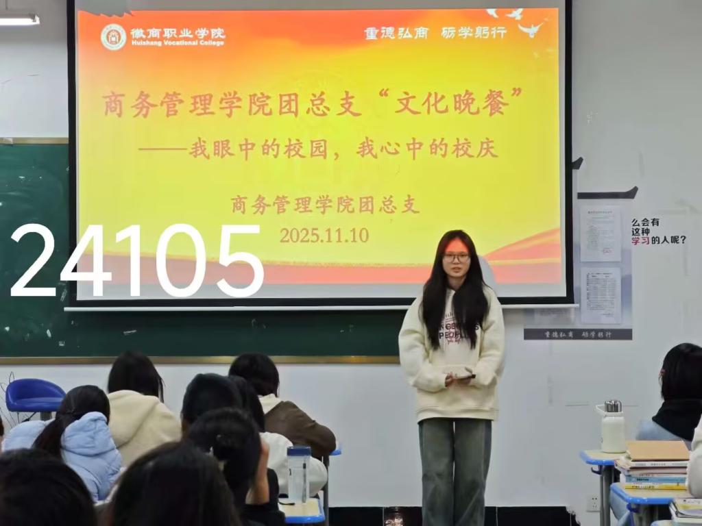 在随后的分享环节,班级每一位同学都走上讲台,结合自身经历畅谈心声。有的同学深情回顾了自己初入校园时的场景,讲述了在图书馆自习、在操场锻炼、在食堂品尝美食的难忘趣事;有的同学则聚焦校庆主题,表达了对学校60周年校庆的美好祝愿,表示要以实际行动为校庆增光添彩;还有的同学将个人职业规划与学校发展紧密结合,立志在专业领域刻苦钻研,毕业后为学校争光、为社会贡献力量。