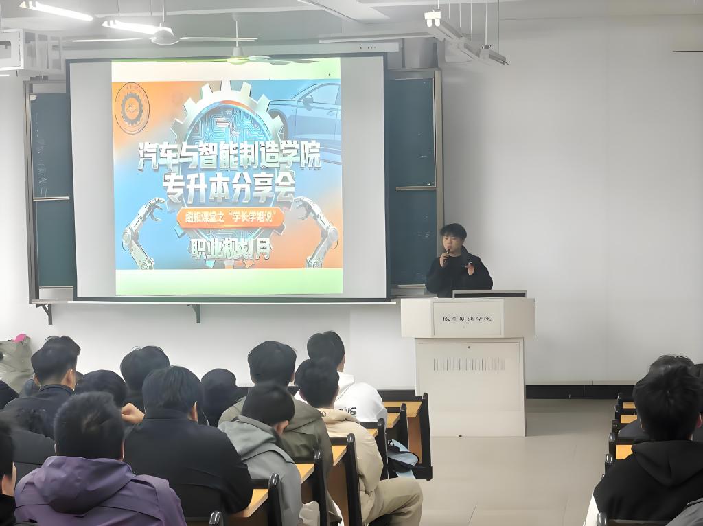 为扎实推进学校“职业规划月”系列活动,帮助学生锚定升学方向、明晰职业路径。11月27日,汽车与智能制造学院开展特色品牌活动“纽扣课堂——学长学姐说”之专升本经验交流会。本次交流会以“学长学姐面对面,升学经验传帮带”为核心,邀请2位专升本高分“上岸”学长学姐担任主讲嘉宾,吸引全院各年级100余名有升学意向的学生到场参与,现场互动热烈。