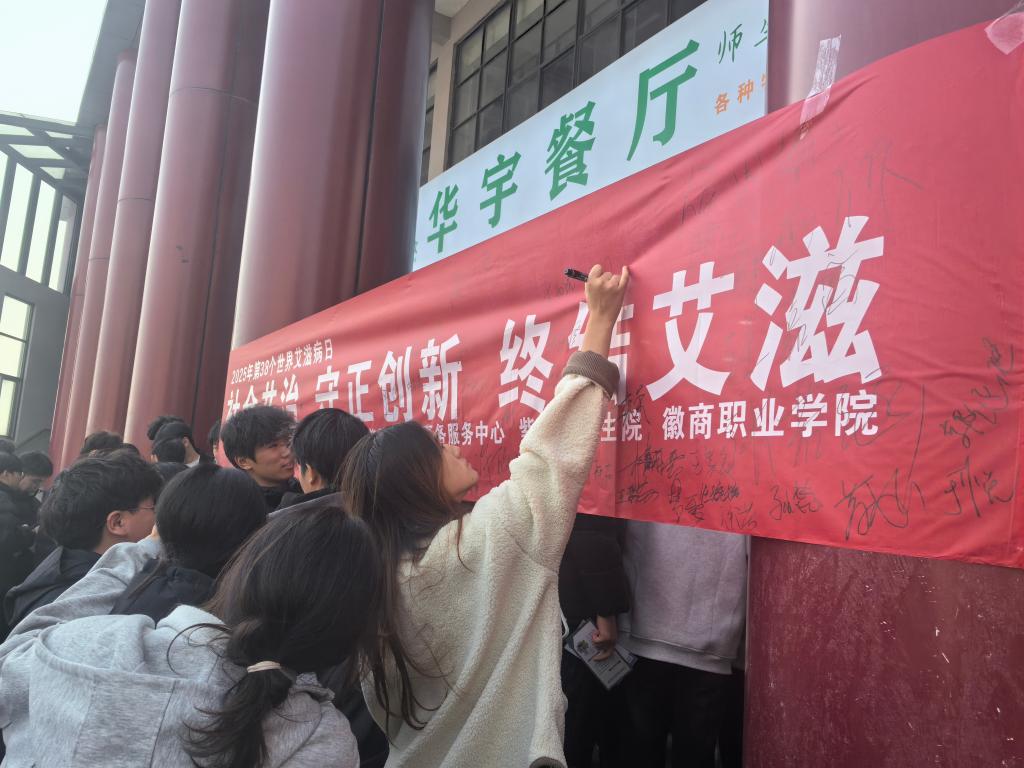 2025年12月1日是第38个“世界艾滋病日”。为深入贯彻安徽省疾病预防控制局《皖疾控函〔2025〕107号》文件精神,12月1日中午,学校总务处联合紫蓬镇医院举办了“社会共治,终结艾滋,共享健康”主题宣传签名活动,向全校师生发出“知艾防艾、健康同行”的倡议。