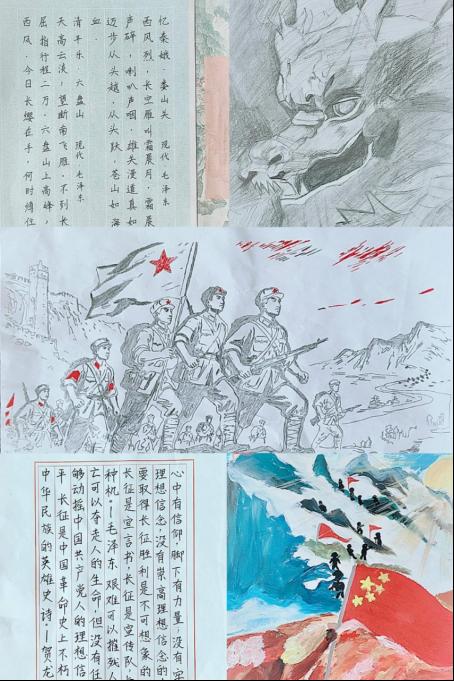学子们以笔为媒,用书法、绘画等艺术形式再现长征场景、诠释长征精神,一幅幅作品饱含着对革命先辈的崇敬之情与对民族精神的深刻感悟。