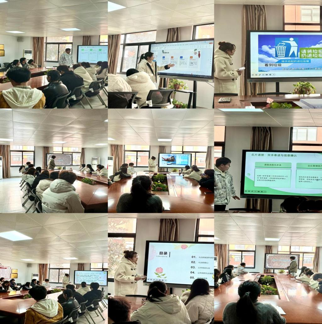 会上,四位社团成员依次进行主题分享,分别从课堂礼仪、日常社交礼仪、活动服务礼仪以及礼仪文化内涵等多角度展开,通过PPT展示、案例对比、场景模拟等形式,将礼仪知识与校园生活实际紧密结合。内容涵盖行为规范、沟通技巧与文化传承,既有实用指引,也有内涵解读,呈现出礼仪学习的多样维度。