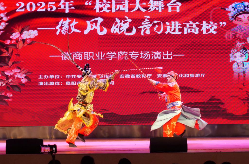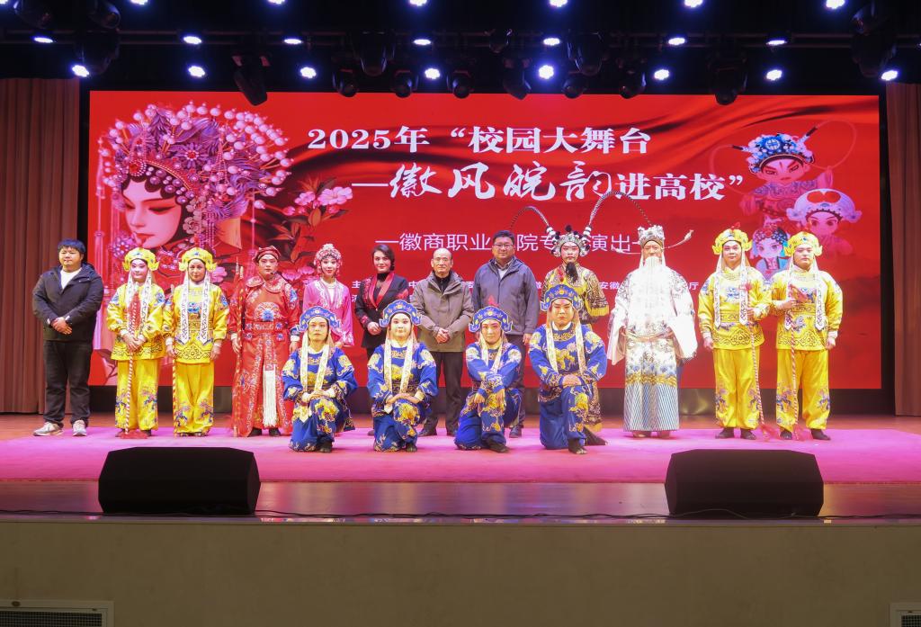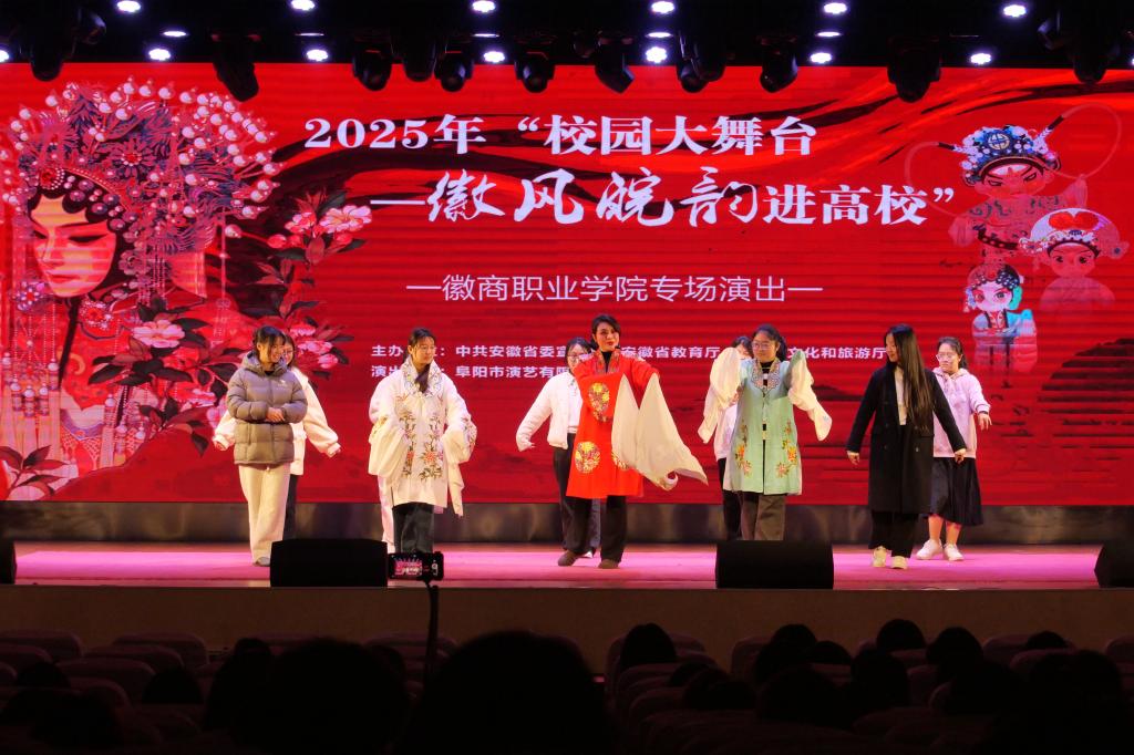 12月10日下午3点,由中共安徽省委宣传部、安徽省教育厅、安徽省文化和旅游厅联合主办,阜阳市演艺有限公司承办的2025年校园大舞台——“徽风皖韵进高校”经典折子戏专场演出,在学校槽郢校区大礼堂举行。全校四百余名师生参加活动,共同感受传统戏曲艺术的独特魅力。