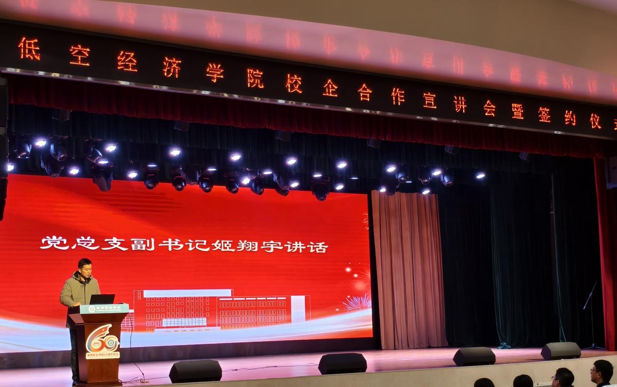 12月24日下午,低空经济学院与合肥兴业经济发展有限公司校企合作宣讲会暨签约仪式在学校槽郢校区大礼堂顺利举行。低空经济学院党总支副书记、副院长姬翔宇,合肥兴业经济发展有限公司人力资源部副部长葛千山等企业代表出席活动。仪式由低空经济学院党总支副书记周喆主持,学院师生代表近三百人参加。
