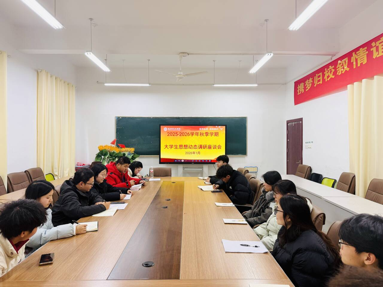 为全面、及时、准确地了解学生思想动态及学习生活需求,进一步增强学生思想引领工作的针对性、时效性与主动性,近日,校团委在紫蓬校区、槽郢校区分别召开2025-2026学年秋季学期大学生思想动态调研座谈会。学校团委相关负责人、各学院团总支书记、团委工作人员及30名各年级学生代表参会。