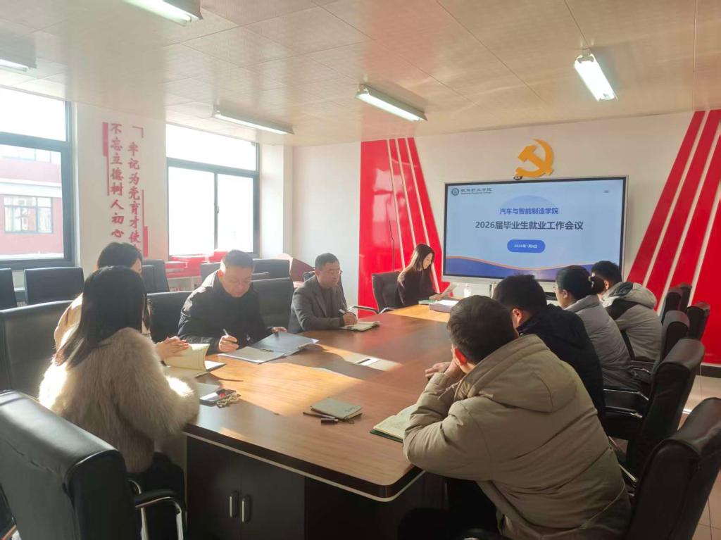 为切实做好学院2026届毕业生实习就业工作,1月9日,汽车与智能制造学院召开2026届毕业生就业工作会议。学院党总支书记靳春生、副院长贾屿、就业干事及23级全体辅导员参会,凝聚工作合力部署毕业生就业各项重点任务。