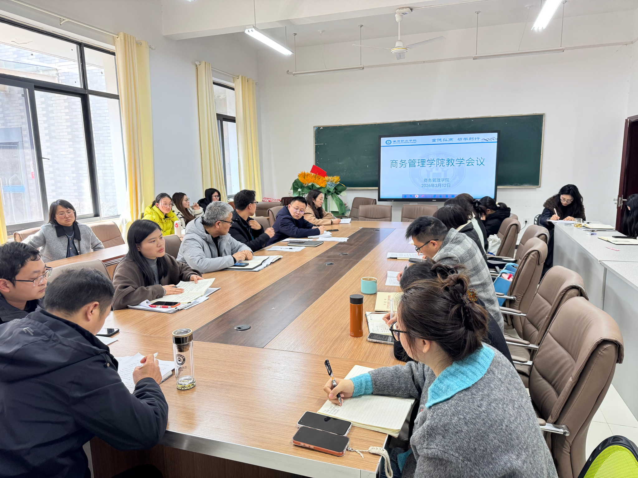 为进一步深化教育教学改革,加强教学全过程管理,切实推进学生岗位实习工作有序开展,持续提升人才培养质量,3月12日中午,商务管理学院在学院会议室召开教学工作会议暨2023级学生岗位实习调度会。学院党政负责人及全体教师参加会议,会议由副院长汪红蕾主持。