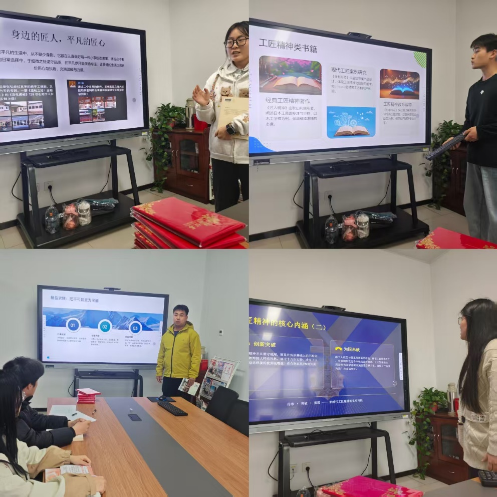 活动前期,图书馆通过第二课堂、徽院读者群等渠道广泛宣传,设置“匠心铸魂·技能立身”主题书展,引导学生品读工匠精神、徽商文化类书籍。评选现场,学生代表按抽签顺序依次登台,结合PPT形式分享阅读心得。申宗烨讲述钱学森故事,诠释爱国奉献、精益求精的科研匠心;胡馨匀、王佳慧分别围绕《传统文化与人文精神》《大国工匠》,展现人文底蕴与当代匠人风采;李志辉、王博穹品读《胡雪岩传》《徽商》,深挖徽商诚信笃行的文化内核;潘研结合《工匠精神:学习型员工进阶手册》,畅谈匠心与职业成长的融合路径。经过评比,现场评选出一等奖1名、二等奖2名、三等奖3名,并为获奖学生颁发荣誉证书与奖品。