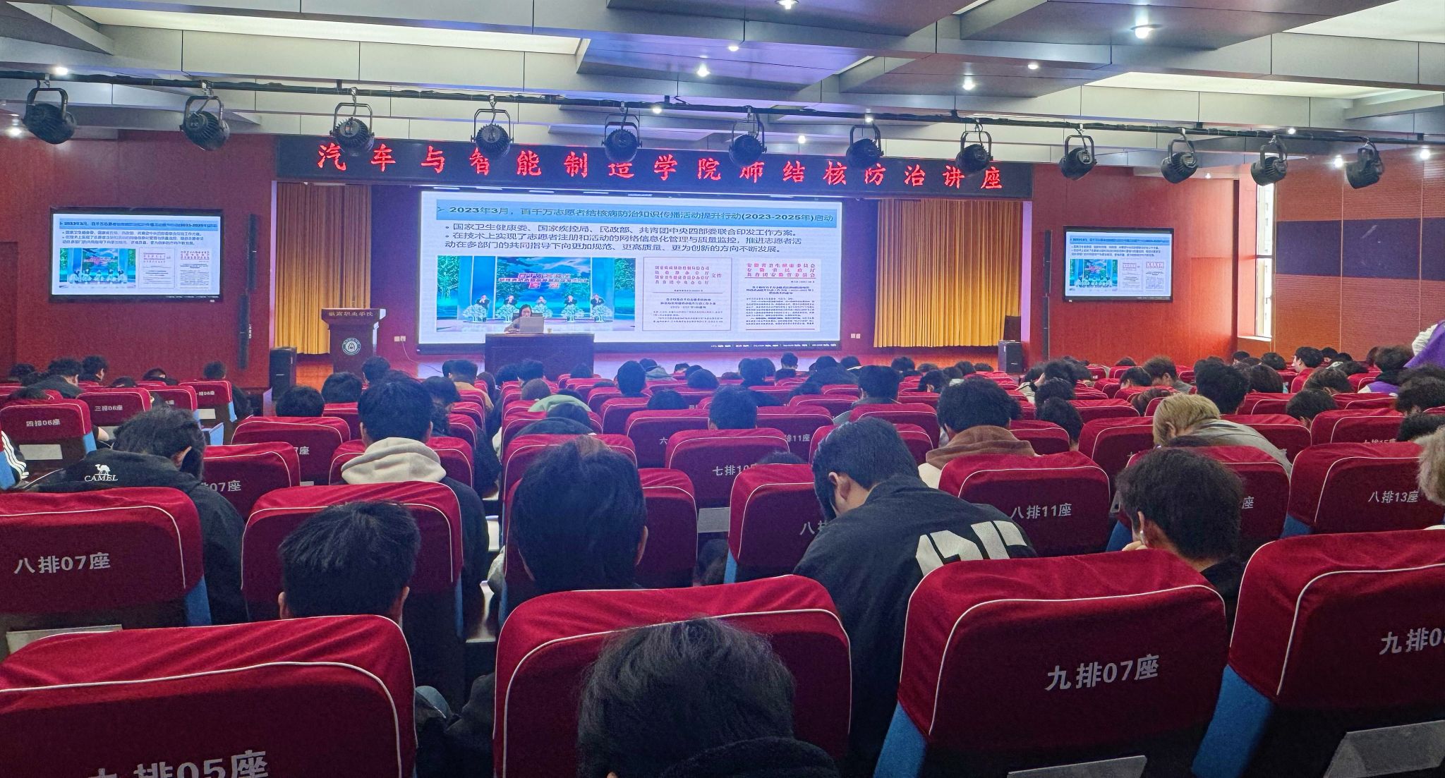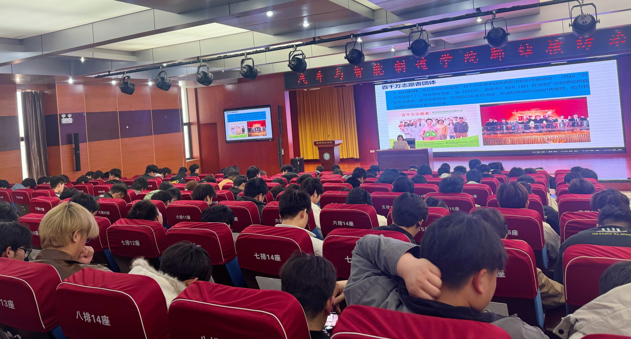 第一阶段,合肥市疾控中心葛星专家聚焦肺结核防治展开宣讲。结合校园人群聚集的特点,葛星专家系统讲解了肺结核的传播途径、典型症状、易感人群及科学防控策略,重点强调“咳嗽咳痰超两周需及时筛查”的核心预警要点,通过真实案例与数据,让师生清晰认识到肺结核对健康的潜在威胁。同时,专家详细解读了校园结核病防控的关键措施,包括规范佩戴口罩、保持教室宿舍通风、做好日常卫生清洁、规范开展疫苗接种及定期健康监测等,引导师生树立“早发现、早报告、早隔离、早治疗”的防控意识,筑牢校园结核防控第一道防线。