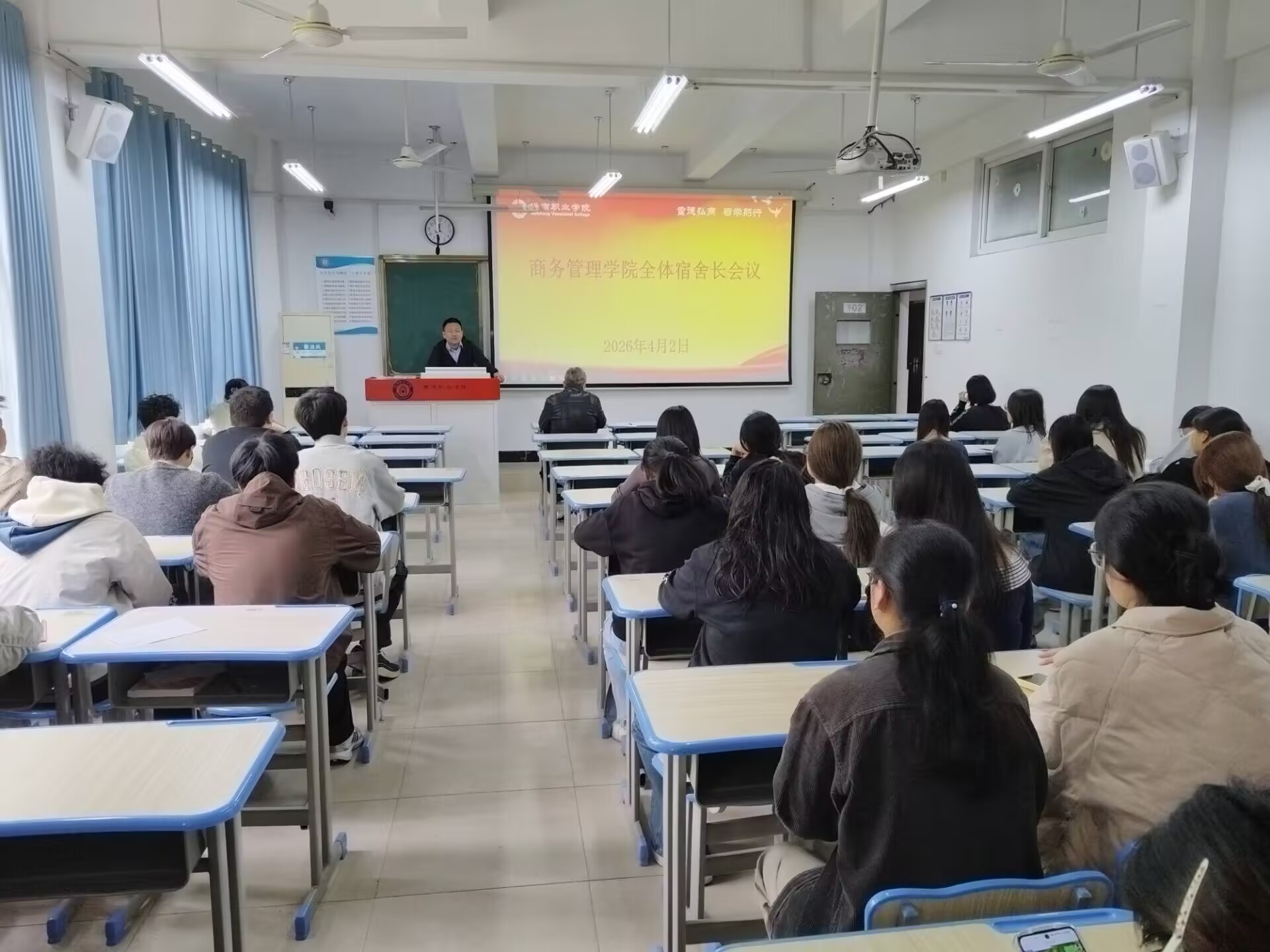 此次全体宿舍长会议,进一步明确了宿舍管理工作的标准与要求,强化了宿舍长的责任意识,为规范学院宿舍管理、筑牢校园安全防线、构建文明和谐校园奠定了坚实基础。今后,商务管理学院将持续加强宿舍精细化管理,不断完善管理机制,全力守护学生在校生活安全,助力学生全面发展。(文/图:杨标 责编:谢雨萌 刘家韦)