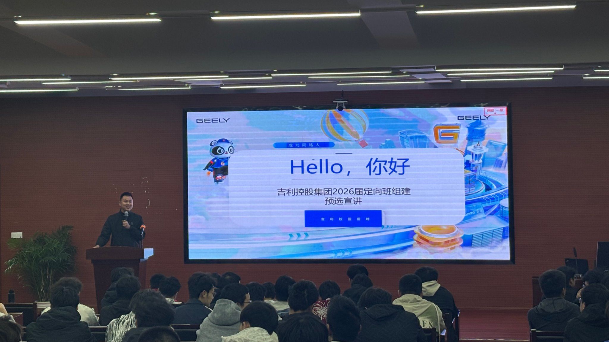 宣讲现场,吉利控股集团代表围绕企业发展布局、人才培养体系展开介绍,重点就定向班培养模式、实习安排、就业保障、转正薪资福利及职业晋升通道等学生关切内容进行解读。活动现场氛围热烈,同学们参与热情高涨,结合自身职业规划踊跃提问交流,对加入定向班、实现高质量充分就业充满期待与信心。