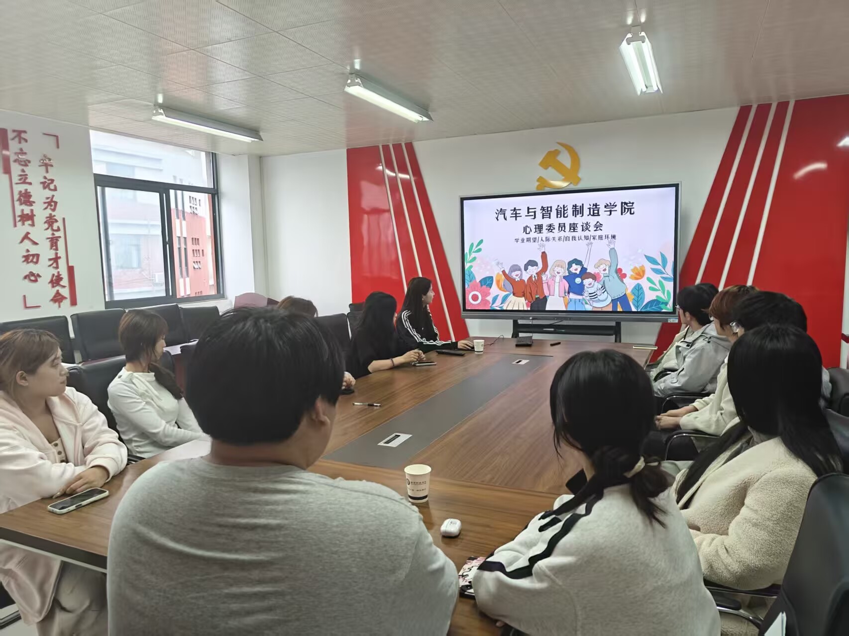 为进一步加强学院心理健康教育工作,完善“学校—学院—班级—宿舍/个人”四级心理防护网络体系建设,提升心理委员的胜任力与助人能力,4月16日,汽车与智能制造学院召开了班级心理委员座谈会。学院二级心理工作站老师水蓉及各班心理委员参加了此次活动。