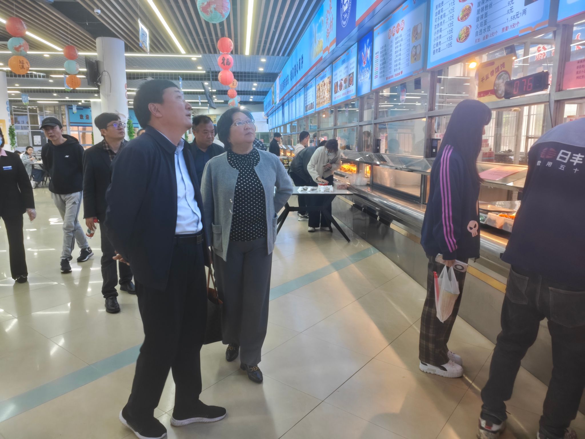 调研组实地查看校园路面黑化项目,了解基础设施升级改造实施细节;深入物业服务、绿化养护、小型维修等一线岗位,全面调研日常运维工作开展情况。在食堂,调研组现场考察运营管理模式,重点围绕成本管控、食品安全管理等方面深入交流,学习借鉴精细化运营管理经验。