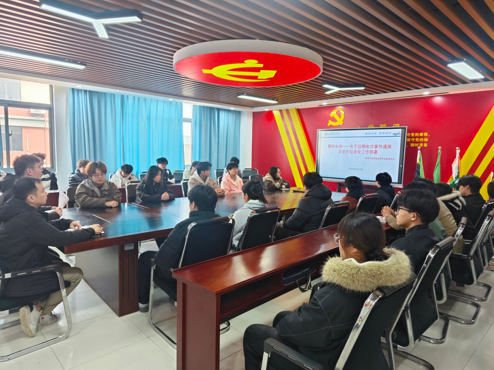 会议以“警钟长鸣——关于近期电诈事件通报及全方位安全工作部署”为主题,通报了近期多起典型电诈案例,剖析诈骗手法,警示安全风险;复盘了反诈宣传工作落实情况,明确改进方向;同时重点强调宿舍消防、用电安全及交通安全,要求杜绝违规电器使用,增强出行防范意识。会议最后对下一阶段安全工作进行了总结与任务部署。